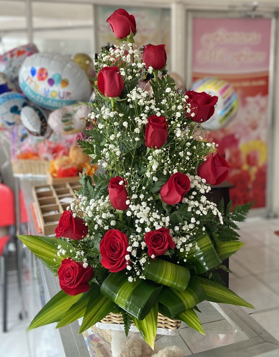Arreglo de 12 rosas con diseño alto